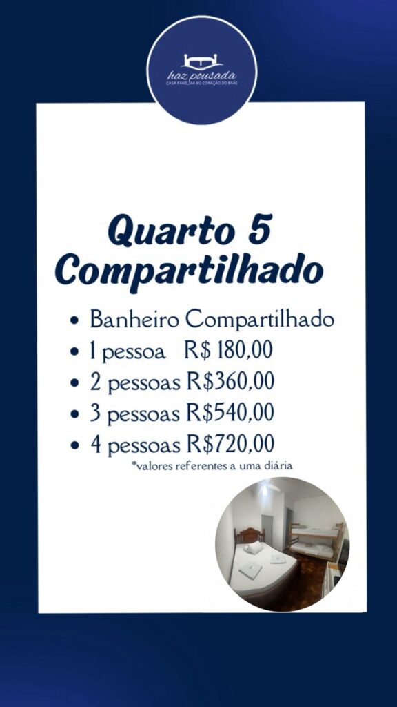 Quartos para até 4 pessoas e com banheiro compartilhado